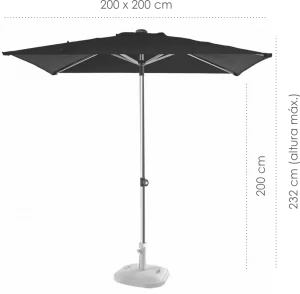 Velocidade máx. de vento admitida: 30 km/h (ombrellone aberto)
