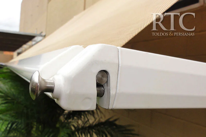 Os braços podem ser instalados 40 cm abaixo do suporte de instalação do toldo.